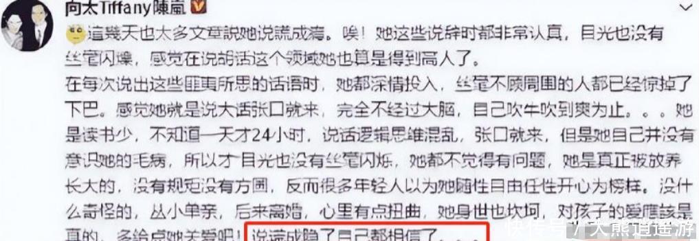 当年,向太的这一句话让张女士直接陷入了舆论“旋涡”中,不少网友还扒出了张女士“爱撒谎”的证据。