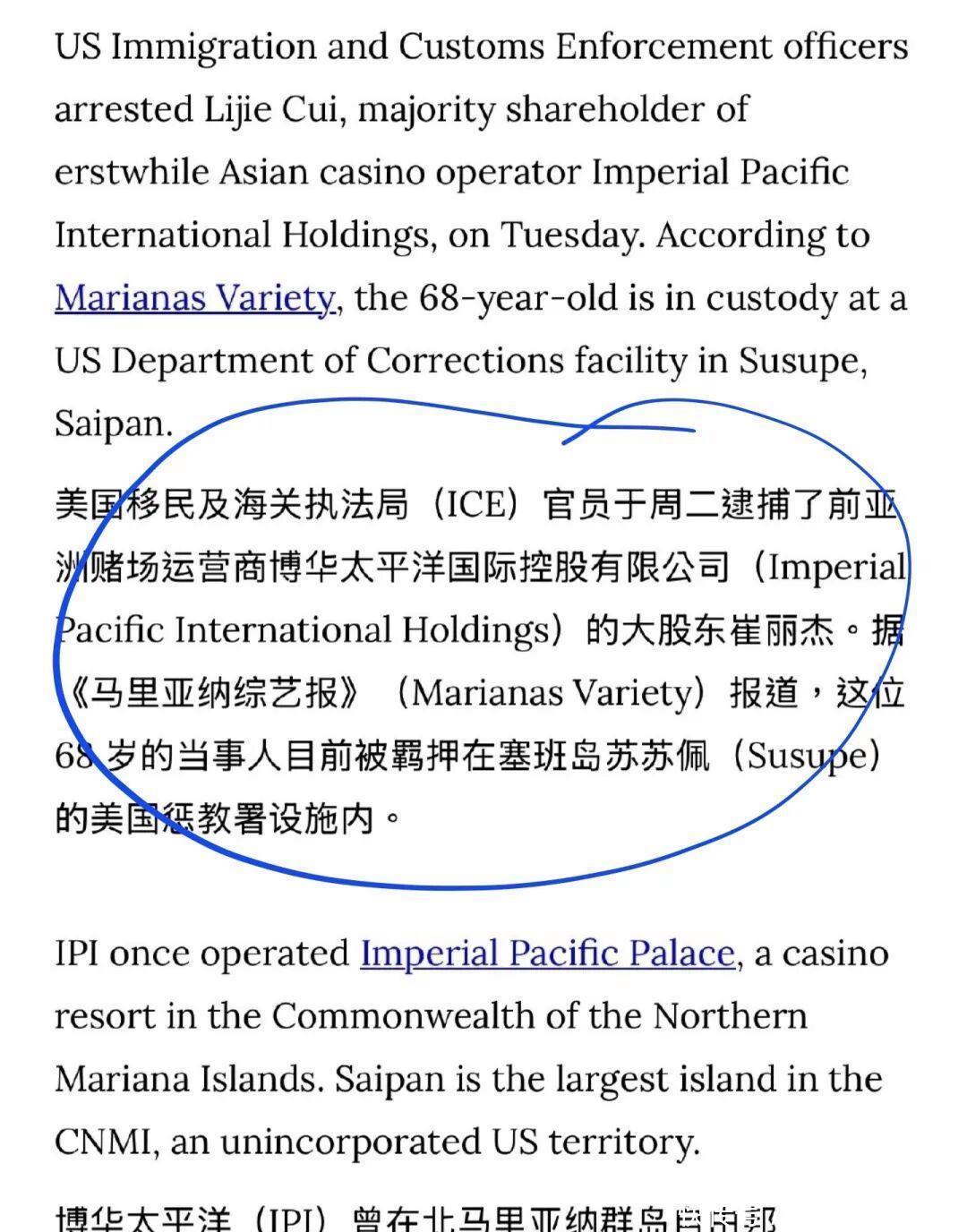 美国移民与海关执法局的行动并不突然。崔丽杰长期定居香港,此次被捕涉及的移民法违规只是冰山一角。她是博华太平洋国际控股有限公司前大股东,该公司于2014年进驻塞班岛,获得独家娱乐场度假开发商牌照。